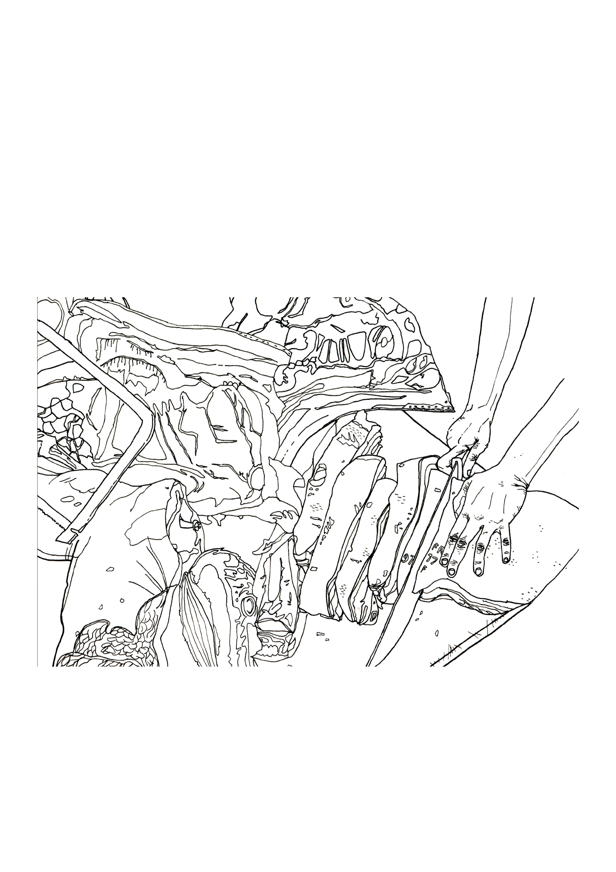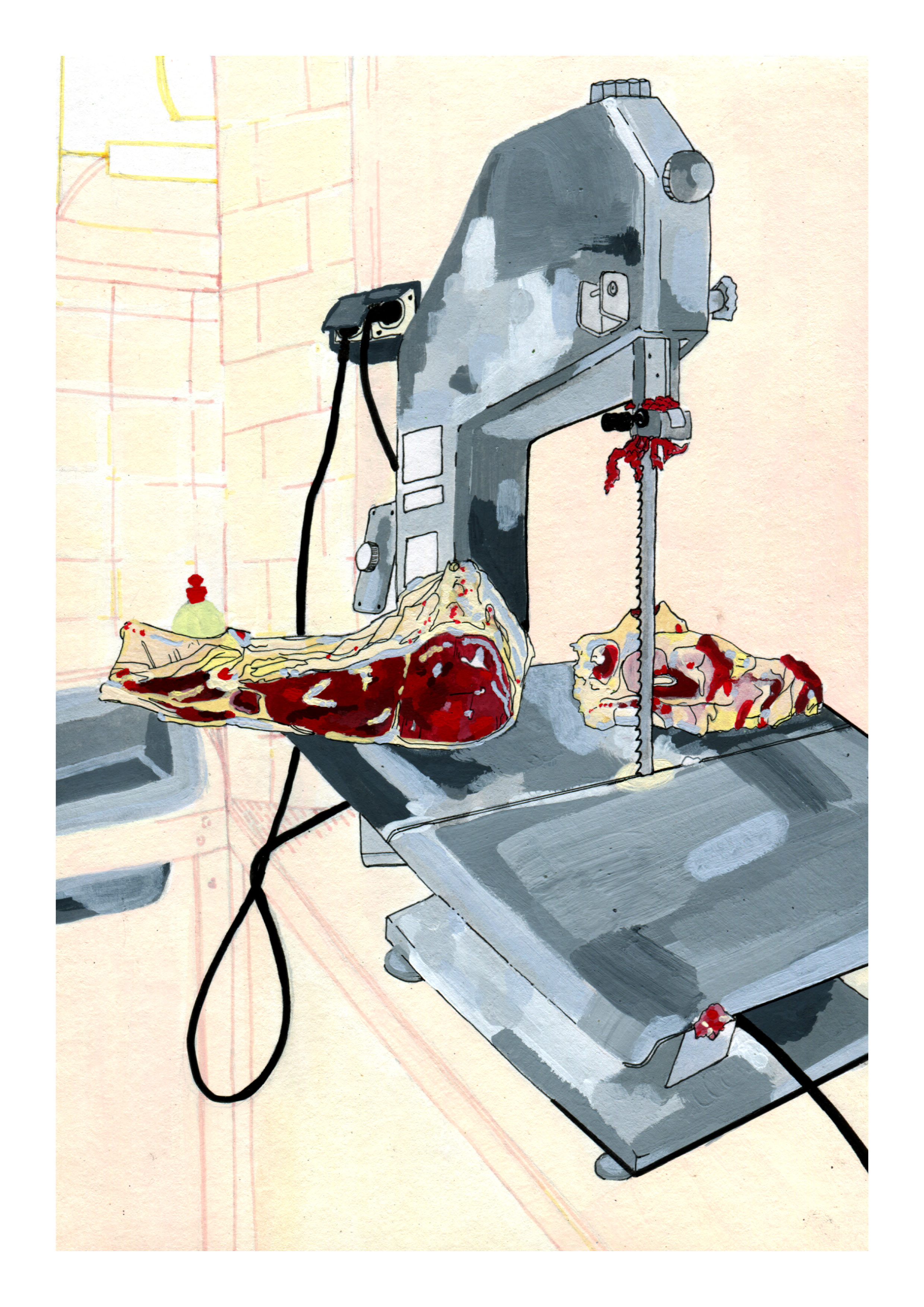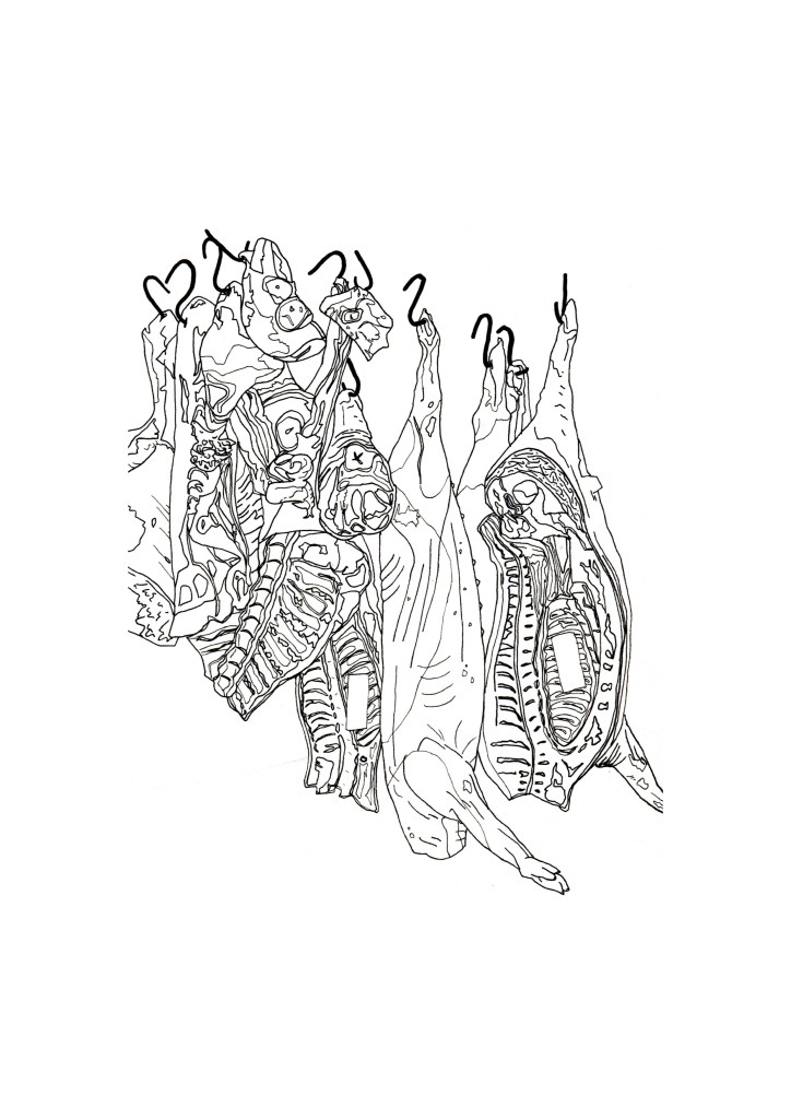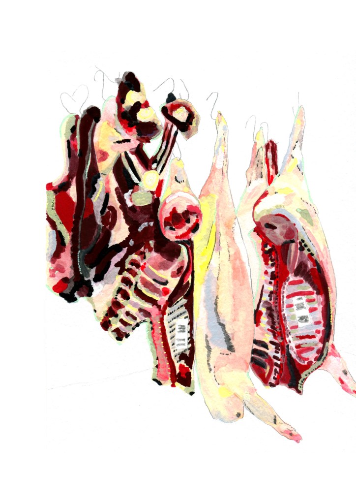 Série mixte (photos et dessins) réalisée à partir d’un service passé à la Boucherie Galante à Saint-Louis sur l’île de Marie-Galante