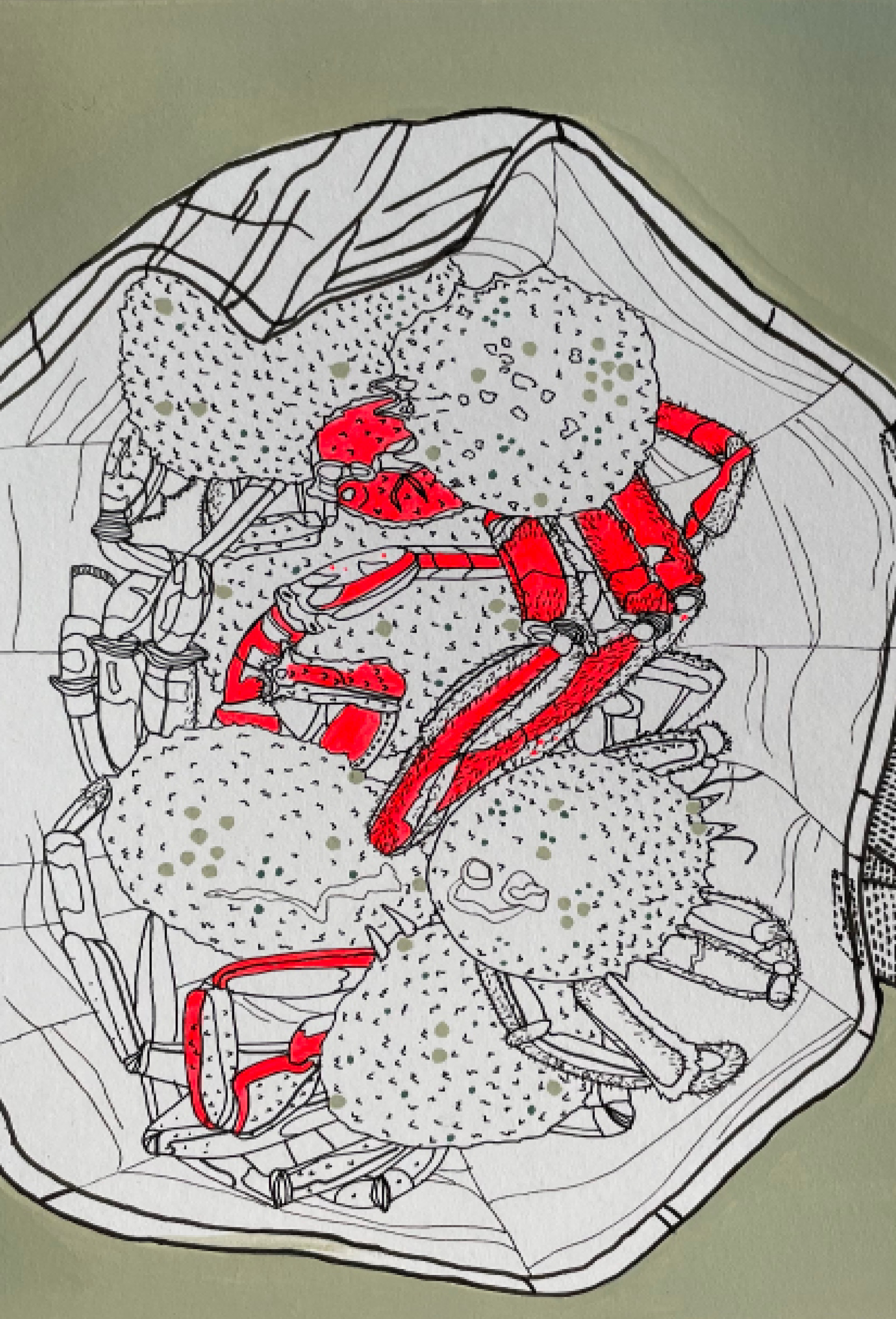 Pinces de crabes. Format A5. Encre