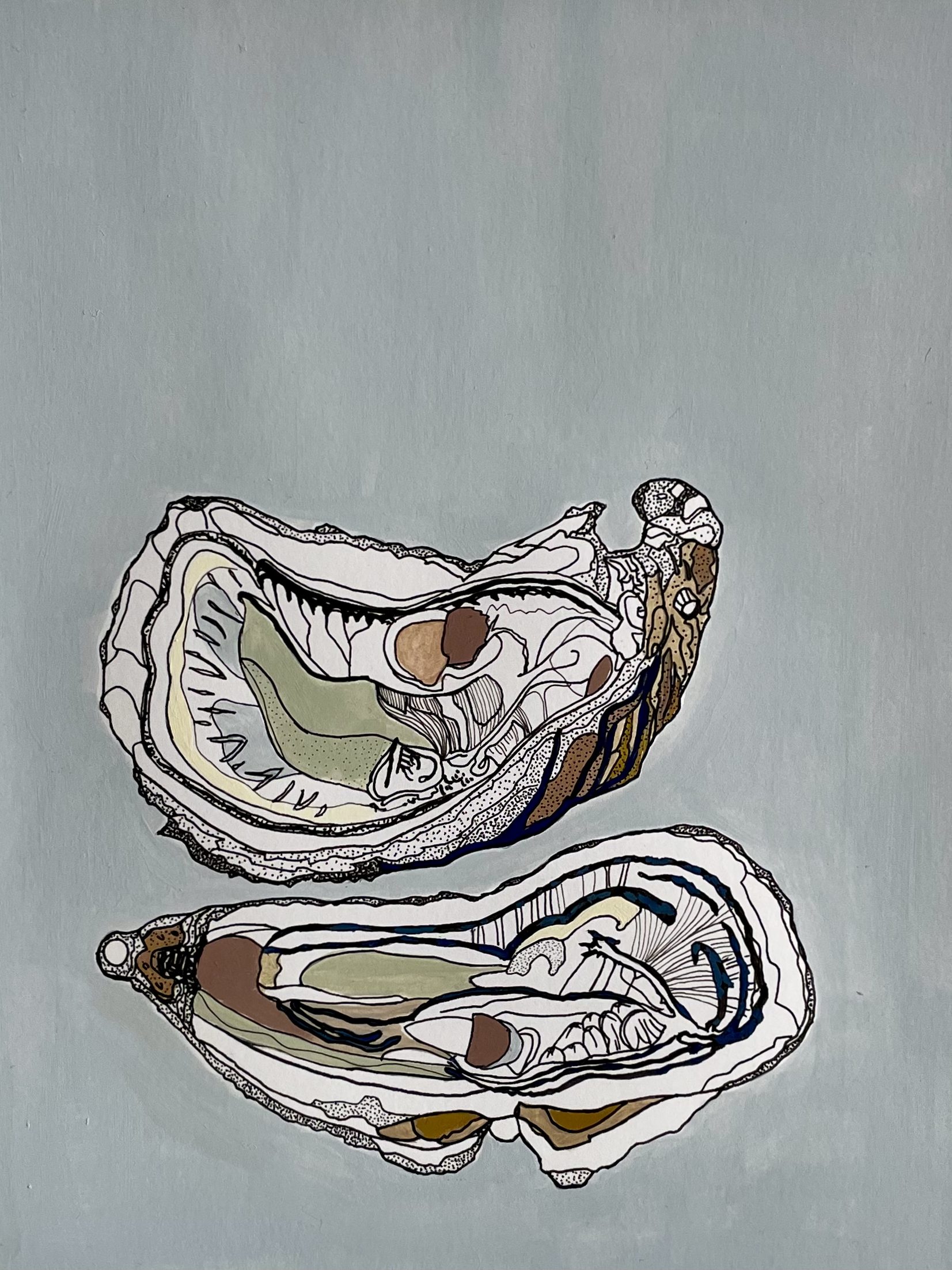 Les huîtres. Format A5. Encre et gouache