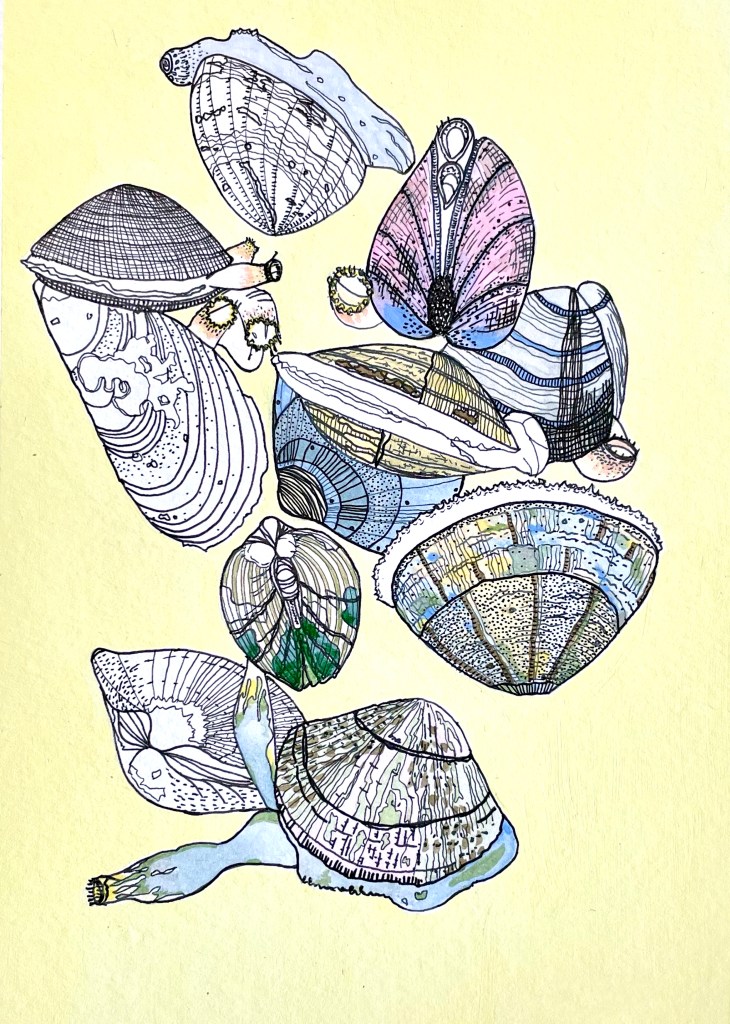 Palourdes. Format A5. Encre, gouache et aquarelle