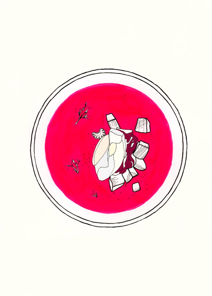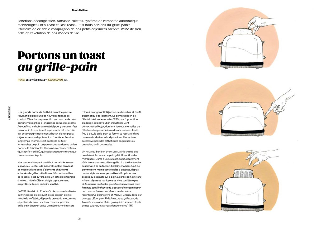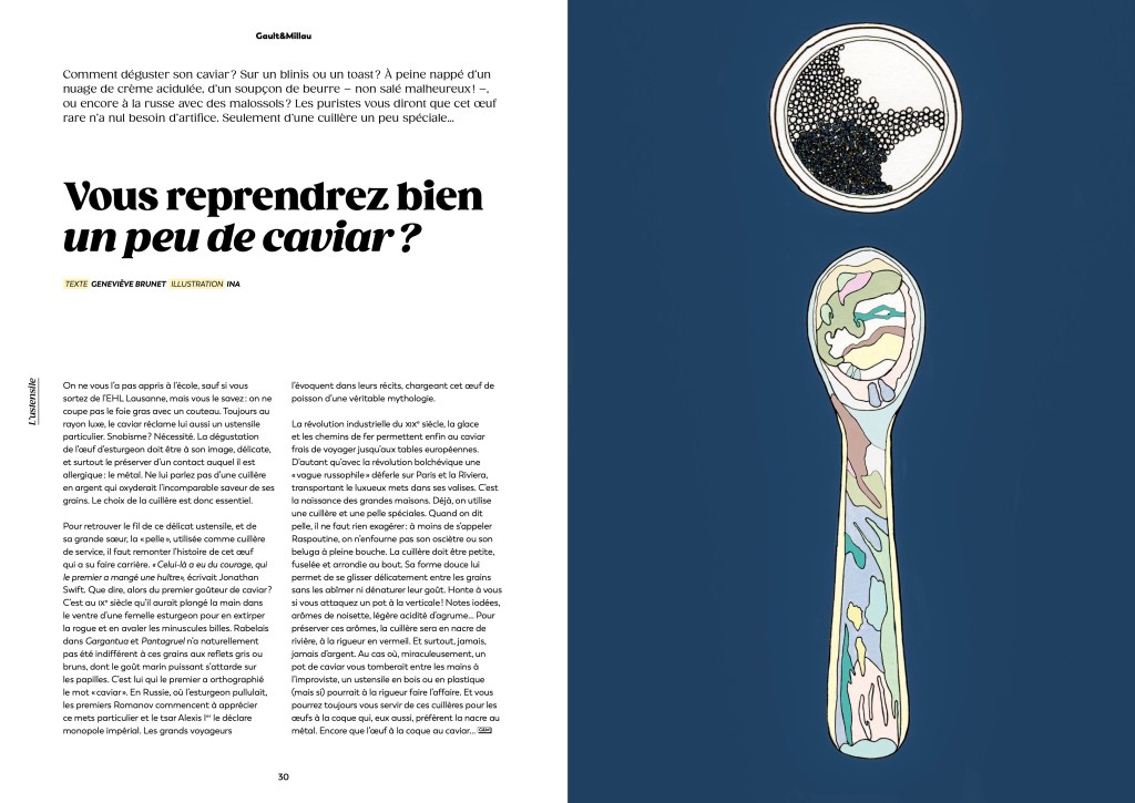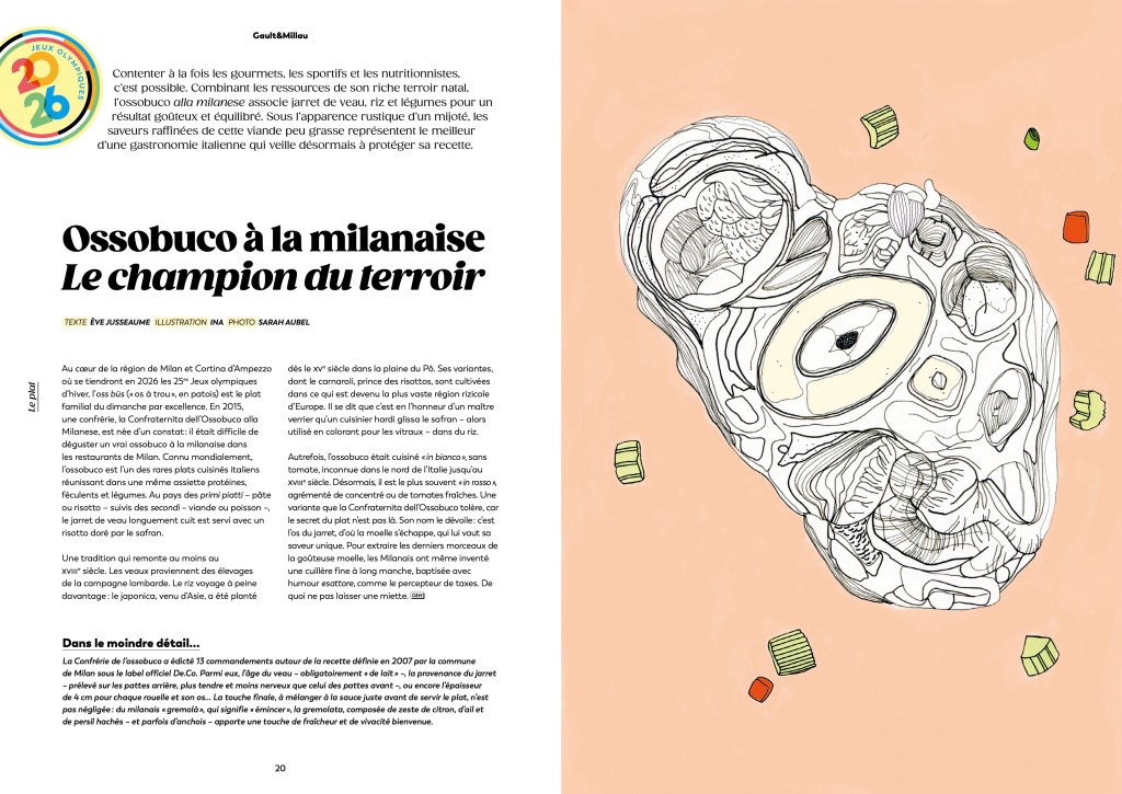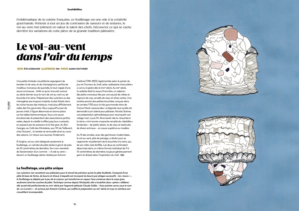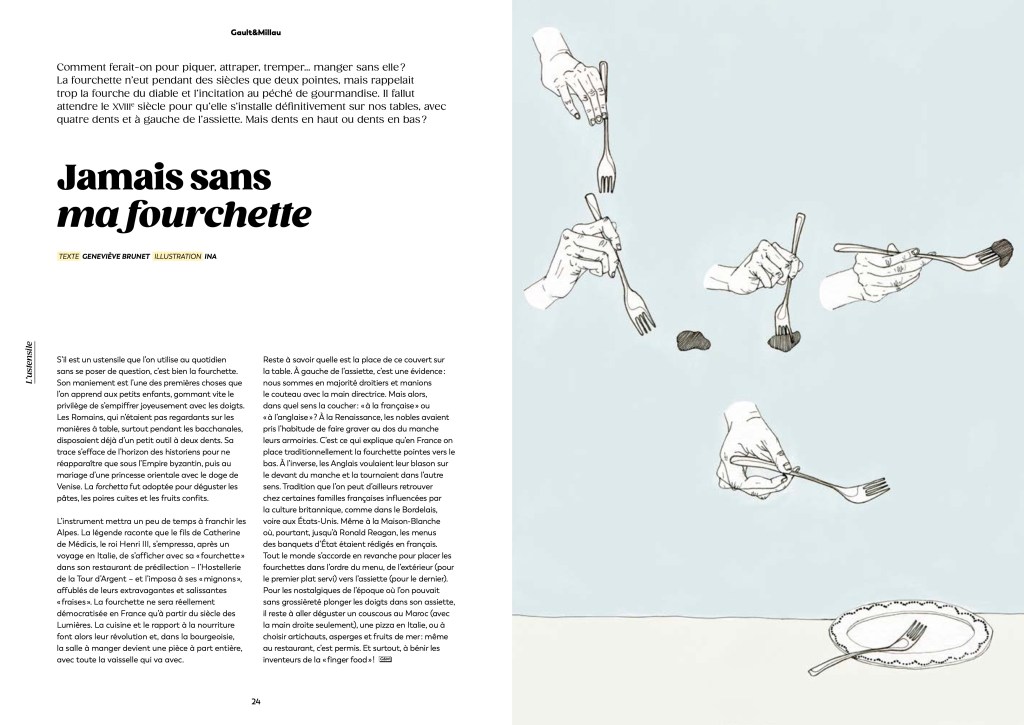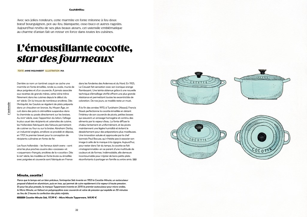 Illustrations des rubriques « plat » et « ustensile » du magazine gastronomique Gault&Millau